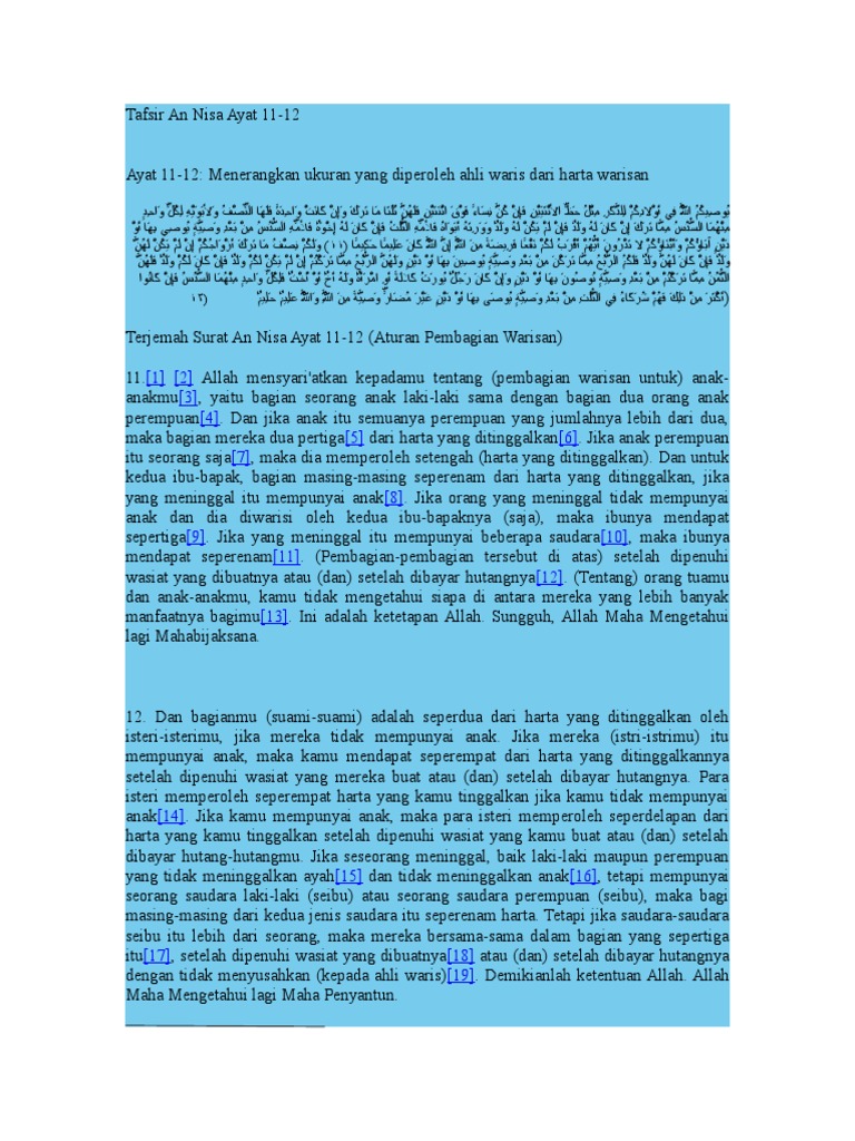 | Baca: Surat Annisa Ayat 11 12 Tafsir Bacaan Dan Terjemahan Qs Surat Dan Ayat |