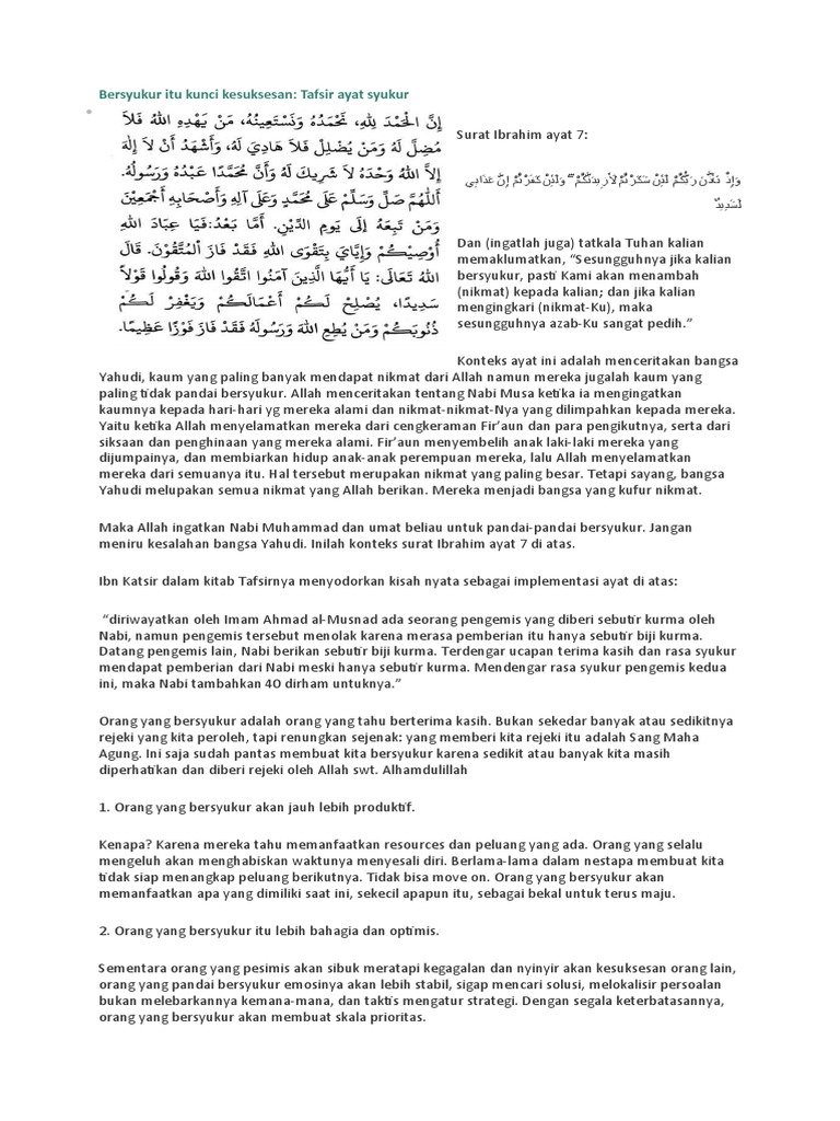 | Baca: Keutamaan Syukur Menurut Al Quran Tafsir Qs Ibrahim Ayat 7 |